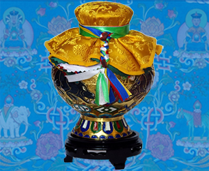 Őszentsége Gongma Tricsen Rinpocse (Őszentsége a 41. Szakja Trizin) 2010. júniusi frankfurti tartózkodása során Fehér Mahakala vázát küldött közösségünknek, amelyet Tiszteletreméltó Kenpó Kalszang hozott haza nekünk. Őszentsége megkérte tanítónkat, hogy végezzen időközönként szertartást Vázaáldással a központ, a központot támogatók továbbá minden gyakorló javára. Az év elején elvégzett szertartás különösen kedvező lehetőséget adhat számunkra, hogy életünk jó fordulatot vegyen, és gazdagságban, szerencsében, boldogságban bővelkedjünk.