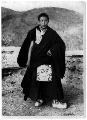 Indiában – elmondása szerint – félénk, otthonülő fiatal volt. Akárhogy is, de egyre nehezebb volt számára a szerzetesi fegyelem külsőségei szerint élni a kolostor támogatása nélkül. Borotvált feje és köntöse miatt gyakran találta magát csúfolódás és megvetés tárgyaként. Miután megbeszélte az ügyet öccsével és a Dalai Lámával, elhatározta, hogy visszaadja köntösét, bár belül, magában továbbra is szerzetes maradt.